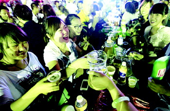 举杯畅饮(资料图)。本报记者 张晓科 摄