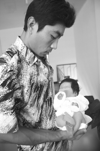 桐桐身体存在缺陷,愁坏了一家人。爸爸赵伟波几乎每天都在为女儿奔波。 本报记者 王晏坤 摄