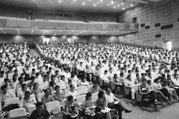本报6月22日讯(记者 王明婧) 22日下午四点半,本报和中国教育在线联合举办的高考志愿填报说明会在山东华宇工学院举行,1500余名考生和家长来到现场咨询,全场座位爆满,气氛十分火热。