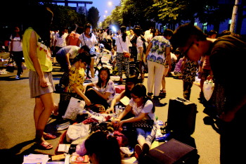 21日晚,德州学院大四学生开始毕业前的大甩卖。“高质低价”的学生用品吸引低年级学生和周边居民前来“淘宝”。 本报记者 王小会 摄