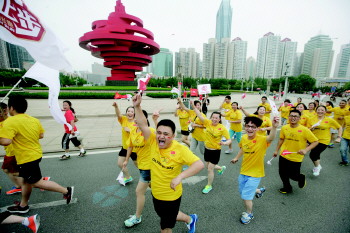 21日,在奥帆中心,2014年奥林匹克日青岛站长跑活动举行。该活动由国际奥委会发起,中国奥委会主办,青岛市体育局承办,共有5000多名市民参加,两届冬奥会冠军周洋出席启动仪式。 本报记者 张晓鹏 摄影报道