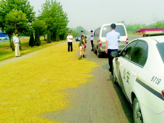 近日,针对辖区内广大农民在主要交通要道晒粮占道情况,博兴交警大队组织警力对晒粮占道现象进行治理。