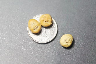 在朱雄英众多核雕作品中,记者看到了几件让人叫绝的核雕作品,一颗颗比豆粒稍大的小弥勒,其细致立体的五官、憨态可掬的形象淋漓尽致地展现在盈寸之间。“这是在直径5毫米的樱桃核上雕刻的。”朱雄英说,这个雕工挑战性很大,只要手一抖,整个作品就废了。因为樱桃的核不仅小而且也很薄,直径5毫米,核壁不足一毫米,往往在雕刻的时候很容易捅破。