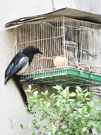 时间:2014年6月14日 自述:鸟儿叽叽喳喳地隔着铁窗交流。 点评:铁栅栏隔不断同类的情谊。