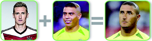 于是一张神图诞生了:克洛泽的眼睛、鼻子和嘴巴+罗纳尔多的发型、肤色和球衣……