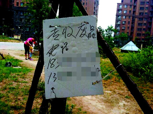 招牌显示了废品回收人员在一个小区的“垄断”。 本报记者 王倩 摄