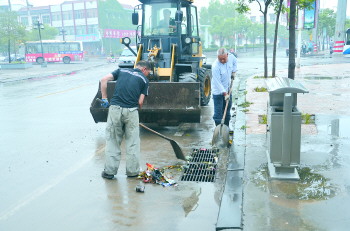 20日、21日,接连两场降雨,章丘城区多条交通干道积水,路面遗留下不少淤泥、垃圾。章丘市千余名环卫工人迅速出动,集体清淤。