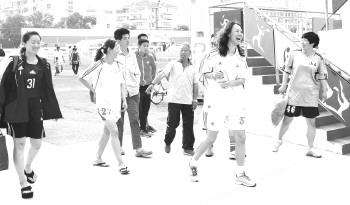 老球迷一边跟着女足队员往外走,一边聊着天。倾耳一听,老球迷是对铿锵玫瑰们有着深厚感情的,“当年是那么英姿飒爽,现在风采还是不减当年。”老球迷一席话逗乐了女足队员们,“老啦,比不上当年啦!”姑娘们笑着答道。
