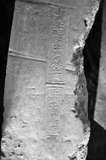戴湾镇文化站陈列的贡砖,上面字迹清晰可见。