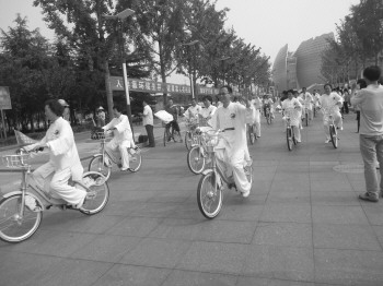 除此之外,来自北京的“2014城市环境与健康万里行骑行团”身着黄色队服十分引人注目,6月6日自北京天安门出发的11人骑行团队,菏泽是他们途经的第16个城市。“我们是普通的环保志愿者,希望通过13个省份,108个城市,128天,6800公里的低碳、环保出行来为城市做出贡献。”来自吉林的环保志愿者季晓秋说,连日来,骑行团队每到一个城市都会受到许多市民的欢迎,而绿色环保出行的理念也越来越深入人心。