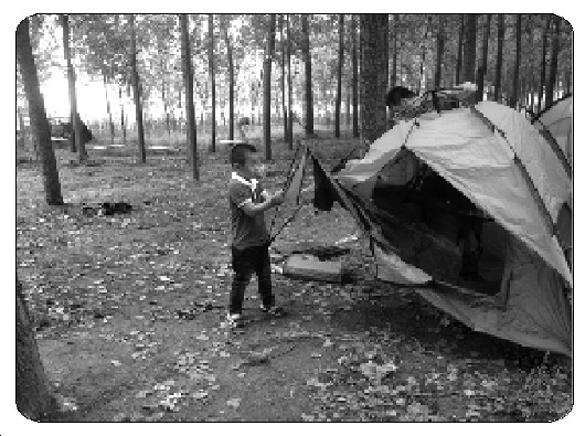 到达到桑园后的第一个任务就是要集合、搭帐篷,六组家庭都分别由蟠龙梆子剧团的工作人员跟拍,总导演韩克还给六组家庭设计了精彩的开场秀环节,每组家庭都有自己的开场口号,其中大舟和爸爸还表演起当下最为流行的前空翻游戏。“经常和爸爸一起出来玩,参加这种活动还是第一次。”大舟告诉记者,这次参加的亲子活动玩得比之前更好了,也接触了更多的小朋友,这也是他第一次很系统地拍影像。