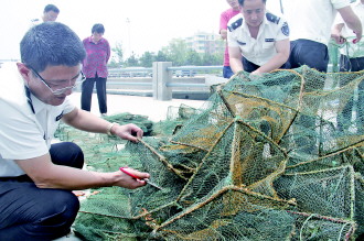 23日,为保护渔业资源,市渔政渔港监察支队统一指挥环翠区、高区、经区渔政站,启动了查处违规作业渔具的联合执法行动,对市区禁渔区线内侧海域开展拉网式排查,并对查处的违规网具进行集中销毁。