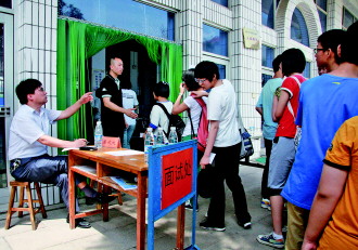 22日,在威海一中报到组中,手持录取通知书等待报到的家长和同学们排起了长队。虽然报到人数众多,但在学校的组织和工作人员的引导下,整个报到现场秩序井然。