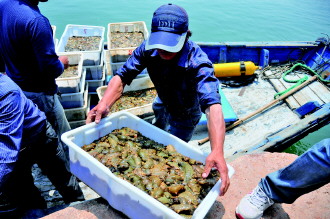 本报6月23日讯(记者 李孟霏) 22日上午,本报第四批读者参加西霞口野生海参体验团。在欣赏了沿途的美景、全程目睹了野生海参的打捞过程之后,团员们纷纷掏腰包买海参。其中,很多人看到从加工的海参里流出黄色的粒状物体。没错,这就是参花,而只有野生海参的内脏里才有参花。