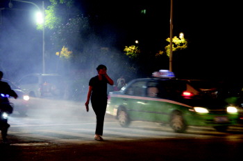 23日晚,青年路天华小区附近,烧烤排放的浓烟已经掩没了半条道路,小区居民正常生活不堪其扰。