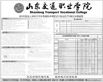 山东交通职业学院2014年高职(专科)分专业招生计划表