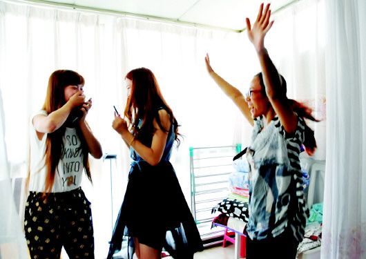 6月24日下午,山东省高考成绩公布。16点30分,双胞胎姐妹刘晓璐和刘晓琛查到高考成绩后,坐在一旁的妈妈张开双臂跳了起来。姐妹俩都是艺考生,今年同时参加高考,且双双过线。 本报见习记者 于雪莹 摄