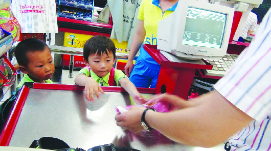 孩子们体验自己购物实践活动。 本报记者 李运恒 摄