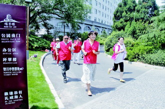 6月23日为“奥林匹克日”,环翠楼办事处前进社区工作人员组织辖区热爱运动的居民,在环翠楼公园跑步健身,弘扬奥林匹克精神,用行动宣传低碳环保。