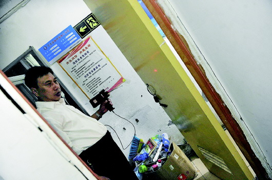 ◤6月11日21点08分,在济南纬六路附近一涉毒嫌疑人家中,为了搜查是否私藏毒品,民警正在用摩尔探测仪进行搜查。