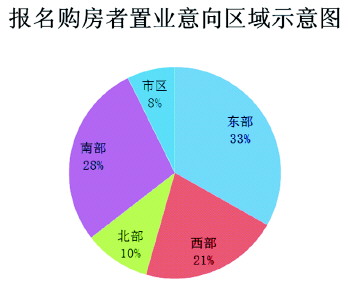 另外,在此次报名的购房者中,有33.2%的购房者主要选择了东部楼盘。其中以银丰唐郡、中海天悦府、保利海德公馆的报名人数居多。26岁的孙女士选择的意向楼盘为保利海德公馆,对于为何选东部的楼盘,她有自己的一番见解。“东部发展现在产业入驻比较多,有一定的配套,很多社区人气都已经比较旺了,入住东部不会觉得孤单。”