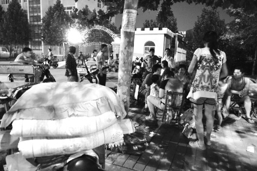 ◥24日晚间,有的家长带来被褥凉席,准备熬夜排队。