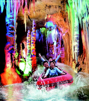 山东旅游绝不能错过的地下奇观,泰山的地下大裂谷。洞内依托丰富的地下水资源,打造了迄今4000米的地下暗河漂流。是迄今为止最长的地下河漂流。夏日艳阳,暑湿难耐。清凉的洞内漂流满足了游客全方位的享受缓缓的水道蜿蜒曲折。游客感受的是惊险刺激。和连绵不绝的自然与声光美景,清凉夏日,溶洞内外温差达20度,是清爽宜人的世外桃源。梦幻般的情调,神话的氛围。哗哗的流水如闻仙乐缥缈,坐拥佛身仙影如临其境。大自然如此充满人性化的安排怎不令人拍案叫绝。走出地下奇迹的溶洞口,眼前便是景区唯美纯真的自然园林。