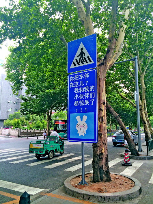 “你把车停在这儿?我和我的小伙伴们都惊呆了!!!”记者在现场看到路边警示牌上还有类似的超萌标语。“除了现场执法、自动抓拍等传统方式外,我们就是想通过这种比较有意思的标语,让大家更好地记住,此处禁停。”李志超说。