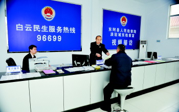 一名村民在东阿县检察院派驻城东检察室递交材料。(资料片)