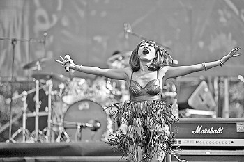 本报讯(记者 邱祎) 近日,吉克隽逸在西安参加2014恒大星光音乐节,这是她第一次登上音乐节的舞台。舞台上,吉克隽逸身穿皮质紧身胸衣配同材质流苏短裙,一开口立即吸引了台下歌迷疯狂尖叫。