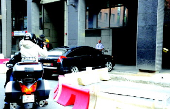 7月1日,在巴黎附近的楠泰尔,搭载萨科齐的汽车驶入内政部大楼。 新华/法新