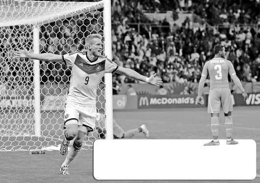 ▲许尔勒灵光一闪脚后跟破门,为德国打破僵局(小图为射门瞬间)。 新华社发