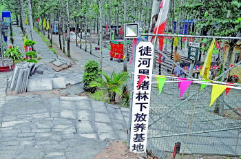 在黄河济阳段黄河大堤外侧,建有一处徒河黑猪养殖参观展示项目,占地约七八十亩,通过组织各种亲近动物的活动,不仅满足了游客的游乐需要,每到节假日都聚敛起不错的人气,也起到很好的宣传产品广告效果。不过,尽管徒河黑猪项目不错,但面积有限,缺少停车场等必要设施,记者采访中适逢黄河河务部门巡查,游客车辆面临无处停放的问题。