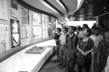 通过展览墙了解济宁兴衰历程。 本报记者 张晓科 摄
