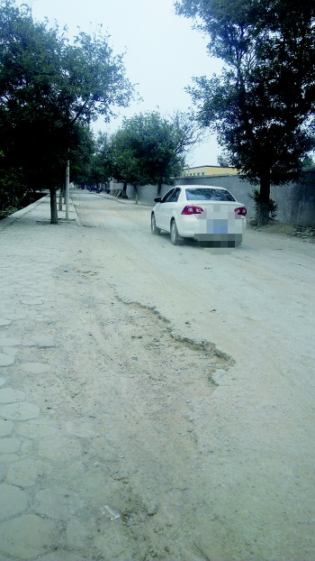 1日下午,帮办记者来到古城区民主小学门口,这条道路自动向西都坑洼不平,尤其西侧一段坑洼已经连成片,起风后尘土飞扬。挨着校门口一段用石渣铺垫过,路况略好。