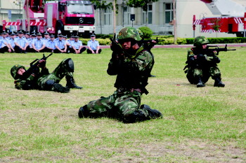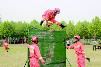 1日上午,菏泽市公安机关反恐处突比武演练活动在民警训练基地拉开阵势。武警、特警、消防三个警种参演人员真实场景模拟精神病人持刀伤人现场处置、反劫持人质演练、武装查缉、高层楼房救人灭火演练等。菏泽各分县局反恐处突队伍及市局机动队代表队进行射击技能、综合体能、警务技能和擒敌拳科目比武竞赛。本报记者 赵念东 摄影报道