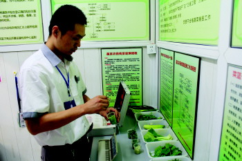 消费者买完蔬菜水果,就可以顺手在市场里的快速检测点测农药残留,最快20分钟就能出结果。日前,青岛城阳区率先试行蔬菜快速检测便民服务点,7家大型超市、3家农贸市场等13个服务点提供免费检测服务。这种由政府主导建设的免费快检服务点,在全省开了先河。