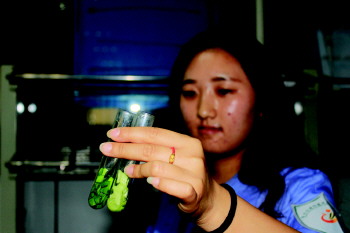 在城阳批发市场的快检中心,做好切片的蔬菜样品。