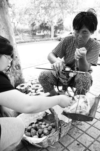 1日,和平路城里中学对面,一果农在路边售卖无花果。这是今年的头茬无花果春果,售价15元每斤。