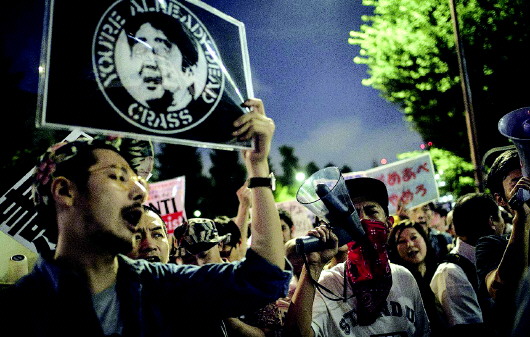 7月1日,日本东京,大量民众聚集在日本首相府前,抗议安倍晋三修改宪法。