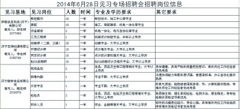 本报济宁7月2日讯(记者 贾凌煜 通讯员 马诘若) 市属见习基地(企业)仍有近400个见习岗位无人应聘。即日起,本报联合济宁市人才服务中心举办见习岗位公益对接汇,陆续公布部分见习岗位。有意向的大学生可以报名应聘,报名咨询电话18766865819。