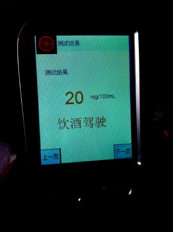 2日下午,记者携带一些荔枝来到奎文交警大队二中队,中队长李东明和另一位民警拿出专用的酒精测试仪,现场进行了检测。14:19分,现场测试正式开始,记者首先吃了两颗荔枝,吃完之后向酒精测试仪吹气,测试仪显示为18mg/100ml,随后又吃下两颗,测试仪显示为19mg/100ml。当吃完第六颗之后,测试仪显示为20mg/100ml,屏幕上也出现了“饮酒驾驶”的字样。