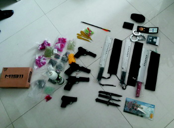 5月7日,在充分固定了相关证据之后,办案民警迅速出击,赶到刘某家中对刘某进行了控制。通过对刘某住处的搜查,办案民警发现了一台笔记本电脑,其QQ号上赫然显示着名称就是“昌乐中介”。而在随后的搜查中,民警从其住处发现了2把以气体为动力的枪形物,塑料枪支模型两个,仿制警察证件数个,砍刀、匕首、手铐等物品一宗。同时扣押玻璃弹、钢珠弹1500余发,气枪充气罐等物品一宗。