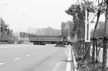 近日,“两河四岸”规划中的滨河路陆续放开通行,成为市区南北走向的新通道,不过有些市区禁行的大型运输车也趁机通过“闯”入市区。 本报记者 马志勇 摄