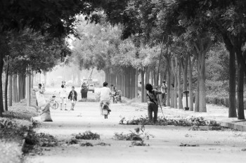 随着槐树开花结果,不少市民开始采摘。7月2日,在长河大道南段不少市民手持工具抢采,折断的树枝散落一地。 本报记者 马志勇 摄