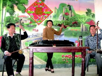 去年,王云才夫妇搬到了北王社区新盖的楼房,家里安上了空调,摆上了彩电,在生活富足的同时,他自编了很多表现新农村的唱段。“手打木板慢敲琴,握弓扶弦定定音,未从开书稽首拜,听我唱唱北王新农村……”说着,王云才为记者演唱了一段自己编写的琴书唱段。