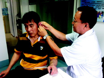 专业机构人员为听障者调试助听器。 蓝娜娜 摄