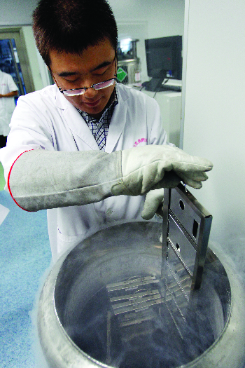 制备好的脐血先被存放在临时储罐内,待血样检测结束后统一放入存储罐。 本报记者 王鑫 摄