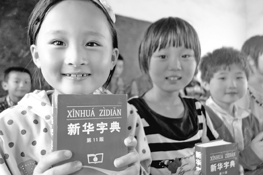 沂水县沙沟镇小崮头村小学的孩子们,每人领到一本《新华字典》。 本报记者 肖龙凤 摄