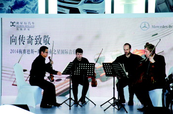 6月26日,2014梅赛德斯-奔驰国际音乐节于济南之星展厅启幕。这是继2010年以来,梅赛德斯-奔驰连续第五年将高水平古典音乐带到中国,也是首次走进梅赛德斯-奔驰济南之星展厅,豪车与高雅音乐交互辉映,为梅赛德斯-奔驰尊贵车主以及古典音乐爱好者们带来最独特动人的韵律。活动现场还特别安排了新一代梅赛德斯-奔驰S级轿车的讲解与品鉴环节,梅赛德斯-奔驰作为汽车缔造者,诞生于世界音乐之乡,早已将艺术的基因深深融入其血脉之中。